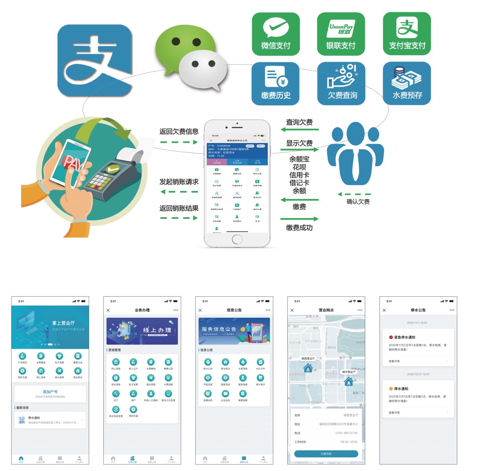 市民用户可同时绑定多个户表,根据不同户表办理相关业务,涵盖个人及单位的用水报装、缴费充值、客户信息变更、增值税专用发票申请、用水阶梯人口登记、过户、销户等多项公用事业便民业务。