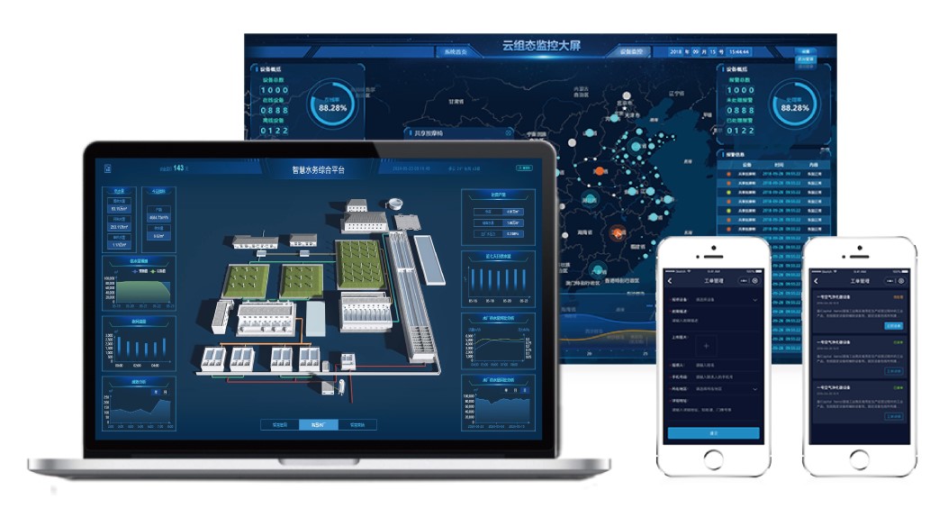 远程监测清水池水位、出水压力、加压泵组工作状态、出水流量,实现智能控制。将水厂生产过程与水质检测技术、水处理控制技术、变频节能技术等数字技术结合,实现滤池自动化、加药自动化、泵站自动化、水质检测等全过程自动控制,现场数据的信息完整采集,将组态软件与数据库技术相结合,实现生产管理实时跟踪,生产报表随时查询及数据追溯。