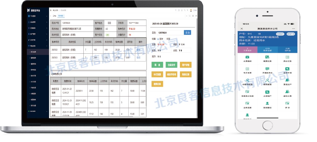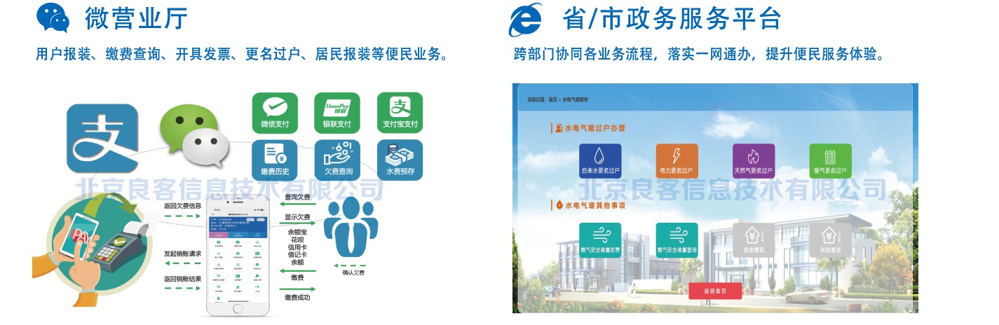 - 提供多种便民服务,实现用水户自主查询、缴费、业务办理等功能。提高居民满意度,减轻客服人员的工作量。