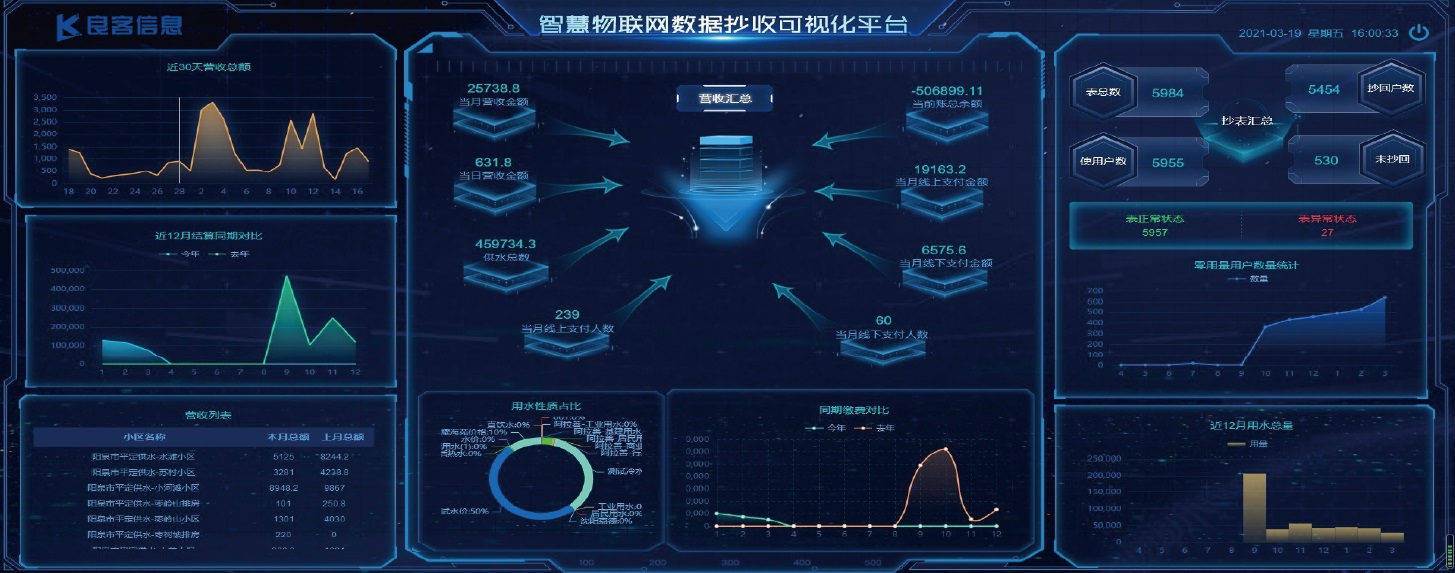 近年来,随着城镇供水价格政策的深化,供水规模的扩大、户表改造的深入、阶梯水价的实行以及移动支付的发展,传统营收系统已经无法满足如今的管理和需求。为使水司能够合理、及时、准确、科学的计量收费,北京良客信息坚持国家政策导向,基于两个办法(修订)的管理理念,结合多年行业经验和技术优势,自主研发智慧营收云平台。助力水司优化营商环境,实现优质、经济、高效的服务目标,提供一个用户方便、企业增效、形象良好的对外服务窗口。